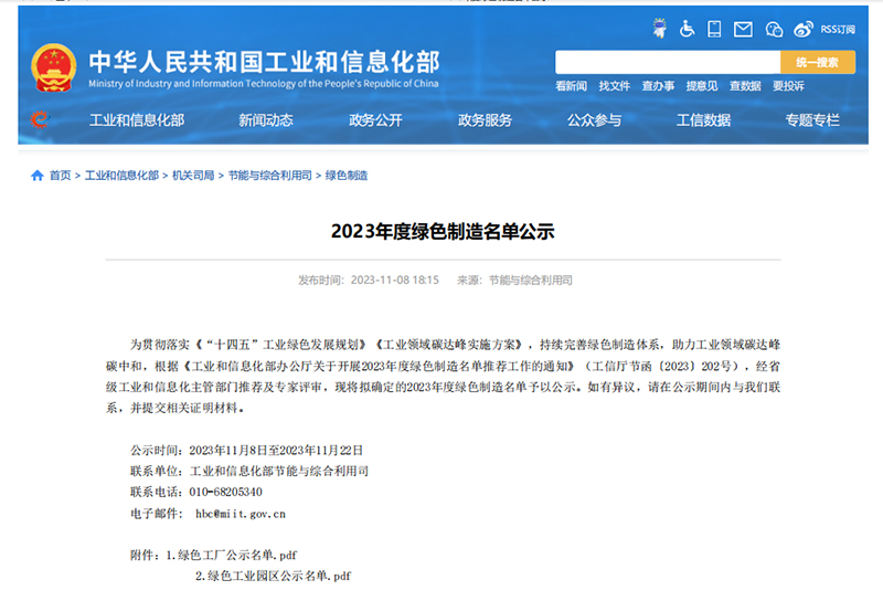 为贯彻落实《“十四五”工业绿色发展规划》《工业领域碳达峰实施方案》,持续完善绿色制造体系,助力工业领域碳达峰碳中和,根据《工业和信息化部办公厅关于开展2023年度绿色制造名单推荐工作的通知》(工信厅节函(20...